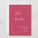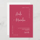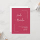 Este elegante convite de casamento minimalista apresenta um fundo viva magenta limpo com na moda caligrafia dos nomes do casal e uma letra serif simples para os detalhes do evento. O design do eterno inclui uma grande foto personalizada do casal feliz no verso, acompanhada por um código QR que permite aos convidados RSVP rápida e convenientemente. Perfeito para casamentos modernos, minimalistas e inspirados em ventre, essa design versátil complementa uma variedade de temas de casamento. Tente se tornar ecológico com este convite ecológico completo, reduzindo a necessidade de RSVP adicional e cartões de detalhes. Personalize o convite facilmente adicionando sua própria foto e personalizando os nomes e as palavras em apenas alguns cliques. Por favor, note: a redação de "gentilmente junte-se a nós para o casamento de" na frente E "gentilmente responda por" no verso do convite não pode ser editada, alterada, movida ou excluída. Eles estão consertados. Se você quiser mudar a cor, poderá personalizar facilmente o convite para corresponder ao seu tema de casamento clicando em "Personalizar o convite". Você pode personalizar este convite com seu texto e compartilhá-lo digitalmente através de texto, email ou mídia social. Preferir um toque tradicional? Você também tem a opção de enviar uma versão impressa para seus convidados — ou faça ambos para uma conveniência adicional!