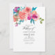 Coral e fandango (roxo) rosas de aquarela e peonias convite para casamento com folhas de turquesa. A foto no verso é opcional. Se você a remover, role para baixo até a parte inferior de "Personalizar este modelo" e clique em "Editar usando a ferramenta Design". Na Ferramenta Design, você pode editar, dimensionar, excluir ou mover qualquer texto ou elemento design.