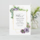 Trendy suculenta convite de casamento com estrutura geométrica dourada e tipografia elegante. Ideal para qualquer tema ou casamento de jardim. A foto no verso é opcional. Se você a remover, role para baixo até a parte inferior de "Personalizar este modelo" e clique em "Editar usando a ferramenta Design". Na Ferramenta Design, você pode editar, dimensionar, excluir ou mover qualquer texto ou elemento design.