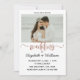 Convide todos para o seu maravilhoso casamento com esta carta simples e elegante. Selecione uma das fotos mais bonitas de vocês juntas. A palavra "casamento" está em estilo caligrafico/manuscrito cheio de efeitos de ouro-rosa.