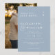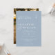 Este convite de casamento com monograma minimalista em azul poeirento pode ser personalizado com suas informações em tipografia moderna e uma foto especial no verso. Criado por Thisisnotme©