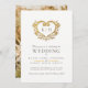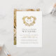 Dourado convite para fotos de casamento do monograma da coroa do coração. Personalize suas iniciais, detalhes do casamento e foto no verso. O convite de casamento está em castanho, ouro e branco nítido. Outras cores e itens correspondentes estão disponíveis. Ideal para o final do verão, outono ou casamento no inverno. © Graphic coração wath old gold styled art e design por Sarah Trett para www.mylittleedenweddings.com no Zazzle.
