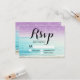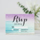 Moderno simples gradiente de purpurina roxa com tipografia simples rsvp casamento, um tema de casamento trendy e tropical fotografia de praia com folha de palmeira.