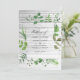 Jasmine, ivy e samambaias em cerimônia de casamento de cor da floresta selvagem convite com elegante caligrafia projetada para ser rápida e facilmente personalizada. Ideal para qualquer tema ou casamento de jardim. A foto no verso é opcional. Se você a remover, role para baixo até a parte inferior de "Personalizar este modelo" e clique em "Editar usando a ferramenta Design". Na Ferramenta Design, você pode editar, dimensionar, excluir ou mover qualquer texto ou design elementos desejados.