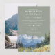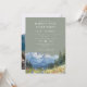 Este convite de casamento de fuga romântica floral de montanha em aquarela para festa de felizes para sempre pode ser personalizado com suas informações em tipografia chic em um fundo verde sage e uma foto especial no verso. Criado por Thisisnotme©