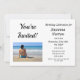 Torne qualquer aniversário uma ocasião divertida com este convite para fotos de aniversário divertida e elegante. Personalize-o e envie-o para a sua grande celebração. As palavras "Você é Convidado" assim como os detalhes da festa estão na tipografia negra. Você pode mudar a foto com sua própria foto, se quiser. O texto é totalmente personalizável e as cores podem ser alteradas através do menu de edição. A parte de trás do convite tem um belo padrão geométrico de cinzas com círculos.