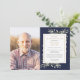 Um convite de lembrança de foto de celebração de vida em aquarela personalizada botânica azul marinho elegante. Projetado por Thisisnotme©