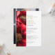 Este convite de celebração de vida e lembrança floral vermelho burgundy e dourado pode ser personalizado com suas informações em tipografia clássica e uma foto especial no verso. Criado por Thisisnotme©
