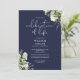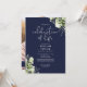 Um convite de lembrança de celebração de vida floral verde aquático personalizado e elegante azul marinho. Criado por Thisisnotme©