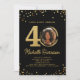 Convite Foto de Confetti Preto Dourado do Partido aniversá