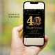 Celebre em estilo este convite de festas de aniversário de 40 anos diversão e festivo com a foto do aniversariante emoldurada por sotaques de brilho dourado e um espantoso fundo preto. Clássico e elegante, mas super divertido e festivo - o convite perfeito para fazer a cara/garota de aniversário se sentir especial. Por favor, veja a coleção de anos cheia de decoração e suprimentos de aniversário correspondentes. Este convite está disponível no impressão e no download instantâneo.