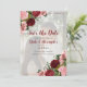 Burgundy elegante e casamento floral cor-de-rosa Salve o cartão de Data personalizado com sua foto e uma sobreposição de texto.