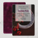 Convite para festa de Natal com uma foto com uma ferradura pendurada adornada com uma fita de xadrez de búfalo e decorações de Natal.