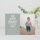 Um belo convite para fotos de festa de aniversário "Bunny" em verde-sábio. Tipografia branca com sotaque de ouvido coelho e padrão de suporte do estilo de basketweave desenhado à mão.