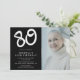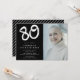 Convite Fotográfico de aniversário de 80 de Trendy. O design apresenta uma fotografia da sua escolha num fundo preto, com um modelo simples de texto branco, fácil de personalizar. O número oitenta é uma diversão, uma tipografia de pincel que dá a este convite uma sensação moderna.