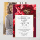 Este convite de festa de aposentadoria floral vermelho burgundy elegante e dourado pode ser personalizado com suas informações em tipografia moderna e uma foto no verso. Criado por Thisisnotme©