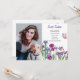 Iris faz dezesseis anos com flores bonito em campo selvagem, em roxo, lavanda, folhas verdes e muito mais, com tipografia com script escovado em uma elegante foto e fundo editável.