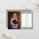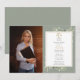 Com delicadas folhas de verde aquarela sobre um fundo verde sálvia, este convite de formatura de direito elegante pode ser personalizado com a foto do formando e detalhes da celebração. Criado por Thisisnotme©