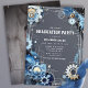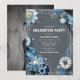 Celebre o trabalho duro e a dedicação de um graduado em engenharia com este convite distinto! O design apresenta um arranjo dinâmico de engrenagens e detalhes técnicos em um fundo cinza e azul, capturando a essência da engenharia. Torne-o pessoal adicionando a foto deles no verso. Edite o texto com o nome dos graduados, horário, data, local e detalhes de confirmação de presença.