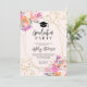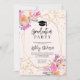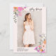 Turma de 2026!! Convite de formatura de primavera, verão chic, rosa, roxo e laranja com tipografia de confete com glitter dourado e aquarela com flores pintadas à mão, galhos de folhas de aquarela verde com moldura geométrica dourada em terrário no fundo rosa, adicione sua foto no verso
