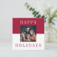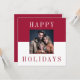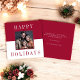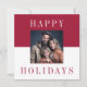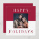 Design moderno minimalista de blocos coloridos apresentando um modelo de foto no qual você pode adicionar sua bela foto, com o vermelho no topo e o branco do fundo com texto simples moderno dizendo feliz e opisitado no fundo dizendo feriados em vermelho sobre fundo branco no topo também todos os detalhes em uma simples fonte moderna em preto no reverso se você tem algum problema com este design ou gostaria dele em outros coloways por favor entre em contato com janine em minhas lojas zazzle botão de mensagem no estúdio de primavera de willow.