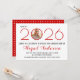 A moderna classe vermelha de convite para fotos de graduação de 2025. Ele exibe o texto "Classe 2025" em vermelho em uma fonte moderna com a foto do formando na letra "o". O nome do formando está em uma fonte do tipo script. O verso inclui um padrão geométrico branco sobre fundo vermelho.