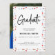 Convite para a graduação de enfermeiras por tipografia de script elegante com um padrão de instrumentos médicos. Perfeito para enfermeiros e médicos. Na parte de trás do convite você pode adicionar uma foto. Ilustrada e projetada por Patricia Alvarez.