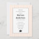 Convite para fotografia de graduação de listras de pêssego da classe 2023. A parte de trás inclui um padrão de pêssego e branco com listras.