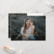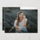 Este anúncio de graduação apresenta uma grande foto frontal de cheio com uma cobertura de script de caligrafia em folha de ouro falso e uma segunda foto no verso, juntamente com o seu convite para festa de formatura. Os elementos traseiros podem ser removidos clicando no botão para editar mais detalhes.