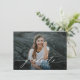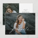 Este anúncio de graduação do orçamento apresenta uma grande foto frontal de cheio com cobertura de script de caligrafia e uma segunda foto no verso, juntamente com o seu convite para festa de formatura. Os elementos traseiros podem ser removidos clicando no botão para editar mais detalhes.