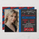 Convite Foto de Graduação do Quadro Vermelho e Azul