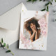 Celebre o seu formando com este convite de fotos florais cor-de-rosa pastel macio e sofisticado. Enquadrado em rosas de aquarela escamosas e folhas delicadas com sotaques sutis de ouro, este convite oferece um design romântico e feminino perfeito para festas de formatura de primavera ou de verão. A estrutura geométrica dourada adiciona uma borda moderna, ao mesmo tempo que mantém a aparência geral macia e eterno. Personalize-o com seu nome de formando, ano de aula e escola para um toque verdadeiramente pessoal.