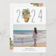 Um convite para fotos de graduação com um fundo de tijolo branco em frente e atrás com texto personalizável. A frente apresenta o ananás floral incorporado no texto de 2024. Personalize com sua própria foto.