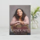 Este convite para a graduação de fotos de cheio apresenta uma camada de tipografia de na moda. Personalize a parte de trás com uma segunda foto e seus detalhes de convite para festa de formatura.