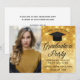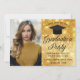Convite Foto de Graduada com Brilho Dourado Chic Festa de