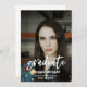 Anúncio de graduado com roteiro moderno. Se desejado, o verso do cartão pode ter texto adicionado para mais informações sobre educação ou festa de casa aberta