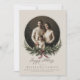 Cartão de férias elegante com foto da sua família cercada por uma coroa festiva com sotaque vermelho. As cores suaves e neutras e o verde criam um aspecto quente e clássico, fazer este cartão perfeito para compartilhar saudações de sua estação com entes queridos em estilo.