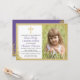 Convite Foto de lavanda Roxo Dourado Primeira Comunhão