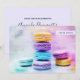 Convite de festa de aniversário com uma foto deliciosa apresentando uma pilha de macarons coloridos.