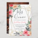 Romântica e elegante aquarela floral e estrutura geométrica de terrário de ouro fronteira quinceañera festa de aniversário com cor rosa pincel pastel pintado à mão, vermelho brilhante, cinza escura, arranjo de flores azuis e amarelas e caligrafia moderna e química com confete dourado.