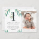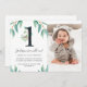 Design moderno e limpo, ele é selvagem com folhas de aquarela botânica e Convite de festas de primeiro aniversario de criança fotográfica.