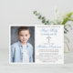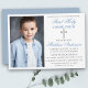 O moderno Elegante Dusty Blue e Silver Primeiro Convite à Comunhão com Cruz e Foto.