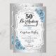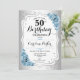 Convite Foto de prata azul empoeirada Elegante 50º anivers
