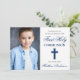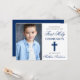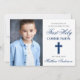 Elegante Blue e Silver Primeiro Convite à Comunhão com Cruz e Foto.