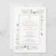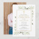 Com delicadas folhas de vegetação em aquarela e um crucifixo dourado elegante, este convite de primeira comunhão de foto elegante pode ser personalizado com as informações do seu evento e foto especial no verso. Criado por Thisisnotme©
