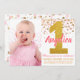 Convite Foto de Primeiro Aniversário da Glitter Dourada Ro