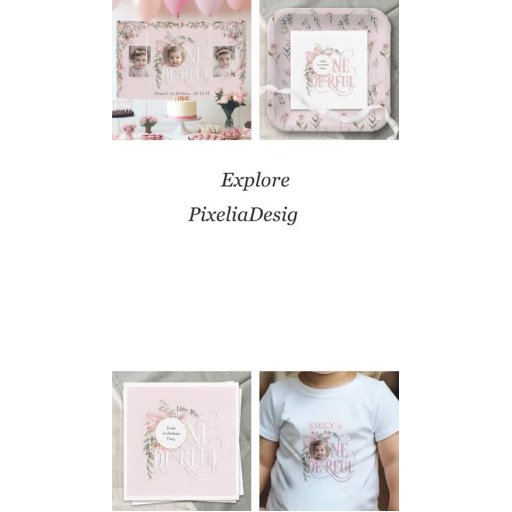 Convite Foto de primeiro aniversario rosa Miss Onemagnific