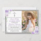 Convite Foto de Santa Comunhão de Garota Floral Roxa 1 rua