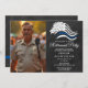Este convite de festas de aposentadoria da polícia de linha azul fina pode ser personalizado com sua foto e informações de festas em tipografia de na moda num fundo de quadro negro. Projetado por Thisnotme©