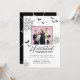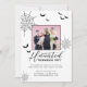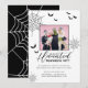 O tema do Dia das Bruxas divertido é convite de festas de lar. Nosso design apresenta um espaço reservado para fotos para exibir sua foto divertida da família. As teias e morcegos decoram o design. Personalize com seus detalhes de eventos e foto para uma divertida e única iniciação do partido Halloween. Projetado pela Moodthologia.
